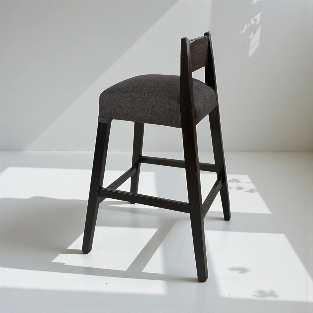 Banqueta en madera paraíso o guatambu lustrada en Negro con respaldo de madera y asientos soft. Un diseño exclusivo para vestir tu comedor, barra o isla de cocina