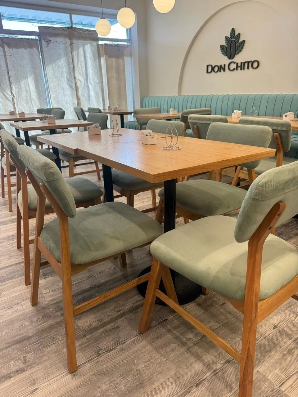 Mesa 1.45 x 0.80 BLEMM en paraiso con lustre poliuretanico + 6 sillas RENA.