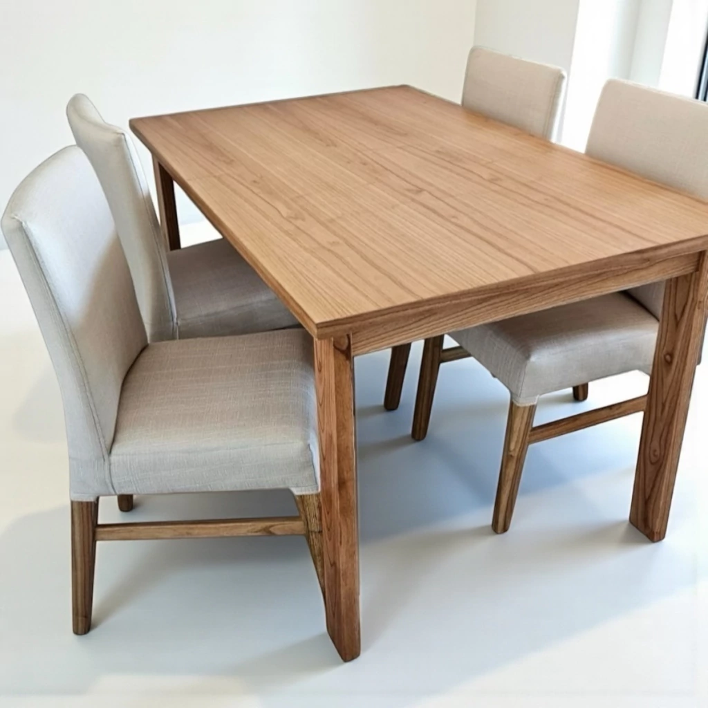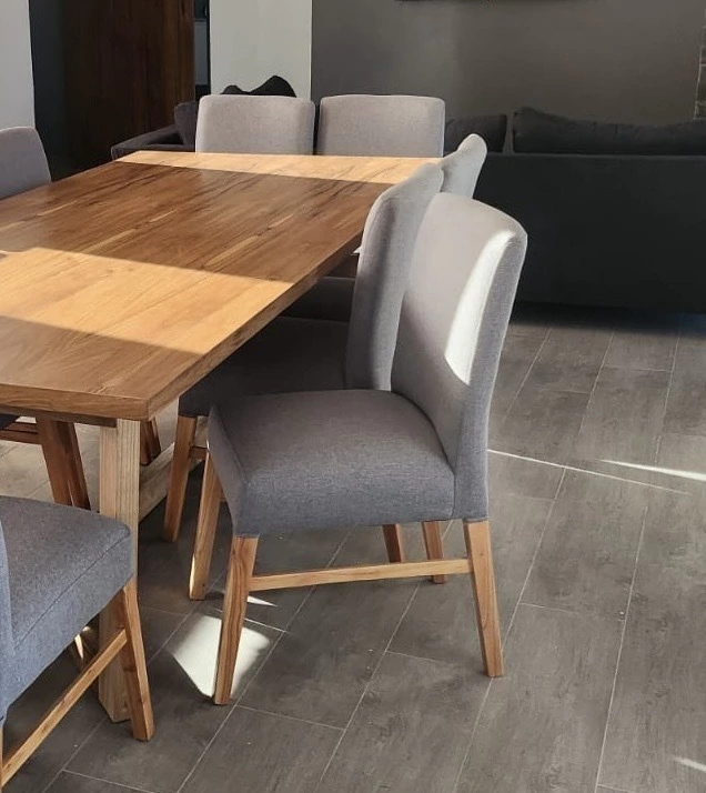 Fabricadas con materiales de alta calidad, tanto la mesa como las sillas están pensadas para durar. Las sillas están tapizadas con telas resistentes al desgaste y antimanchas, garantizando que se mantendrán impecables a lo largo del tiempo.